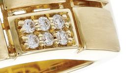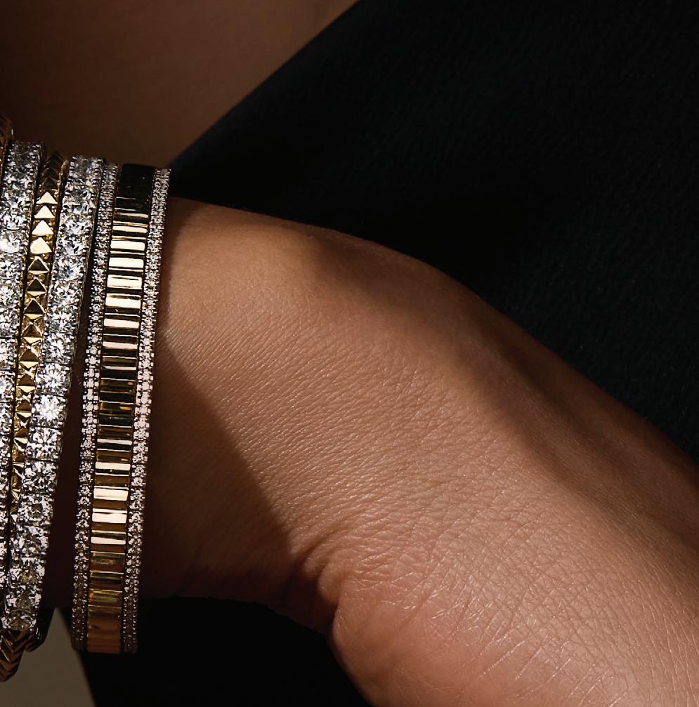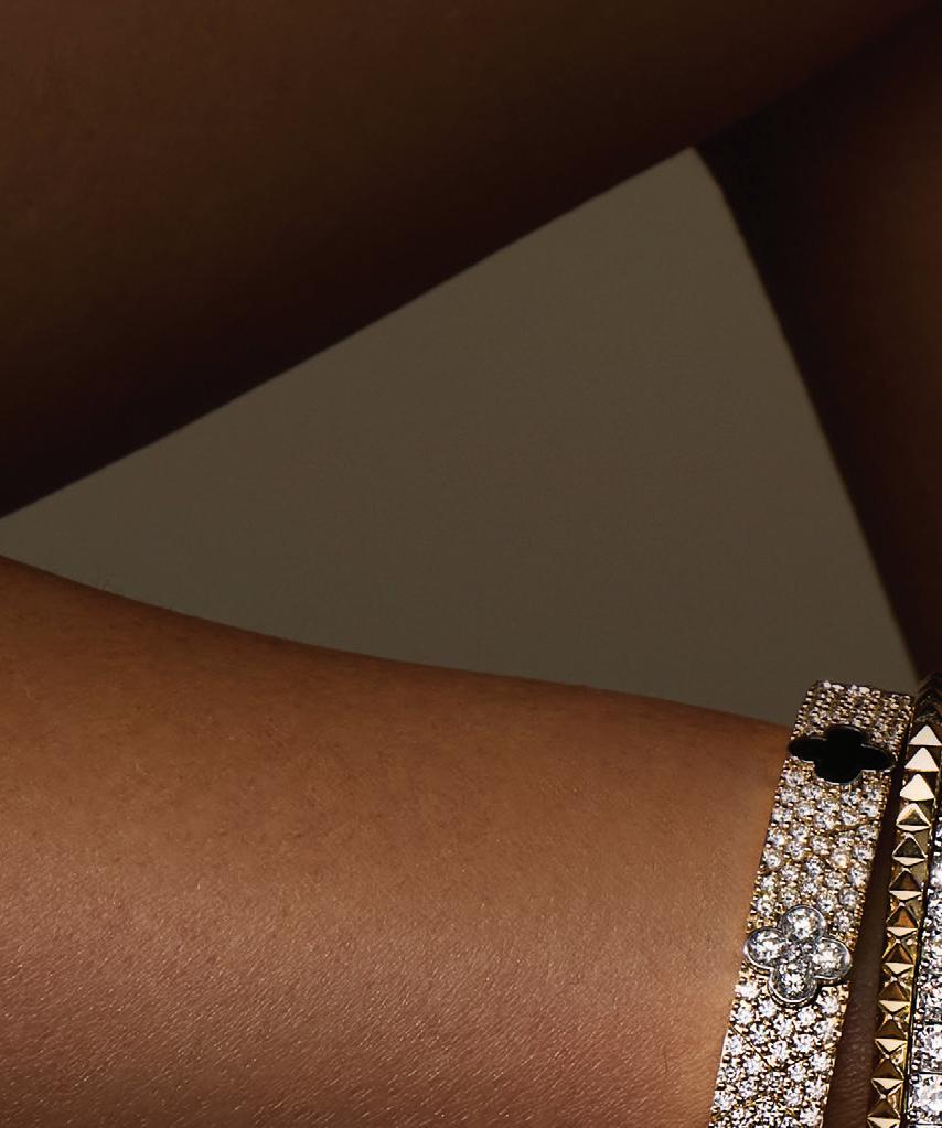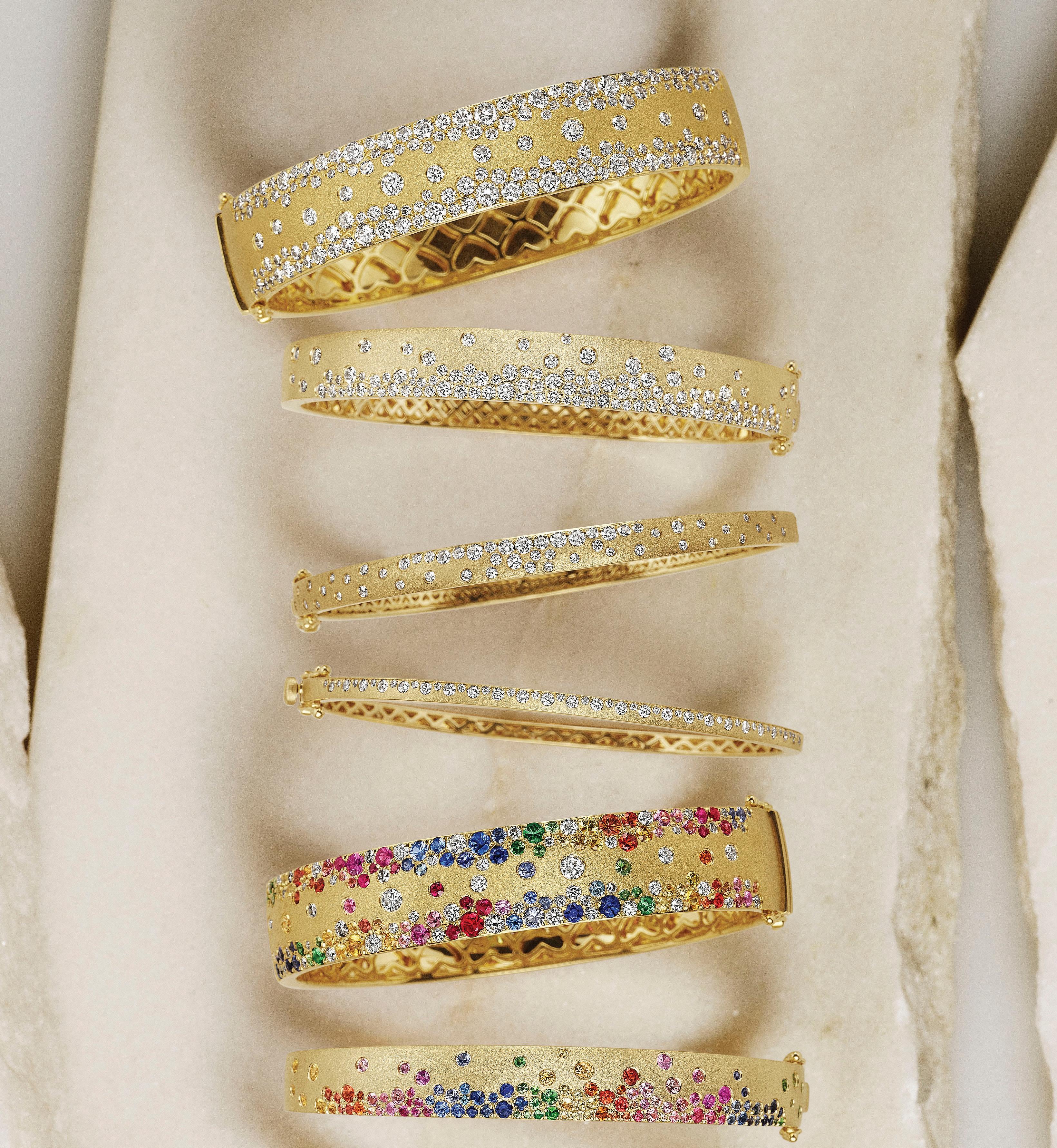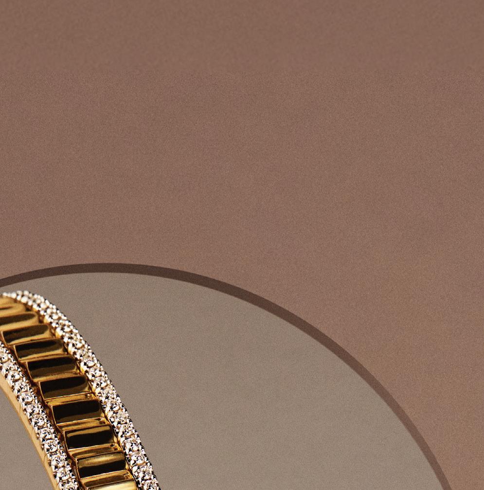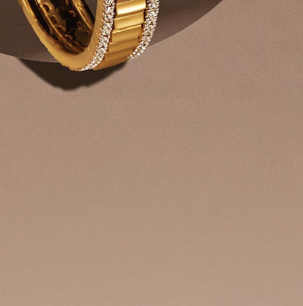 Elevate your showcase: a yellow gold Flexie bangle featuring 72 round stones totaling 0.33 ct. Flexible design built for daily wear, effortless stacking, and standout case presence that draws shoppers.