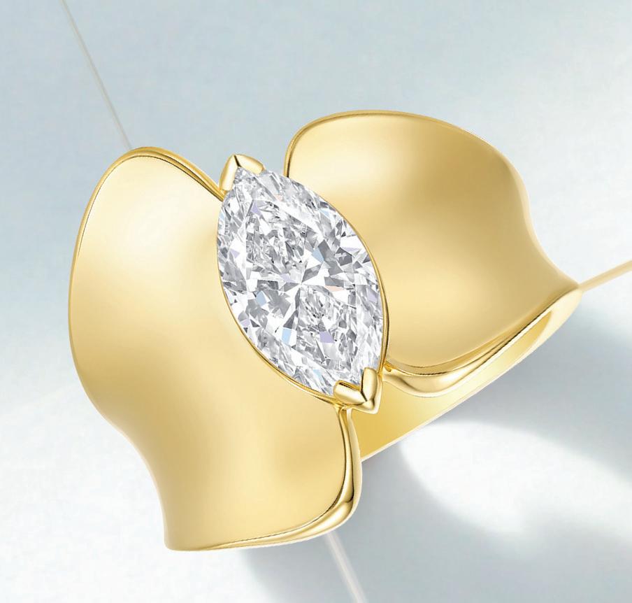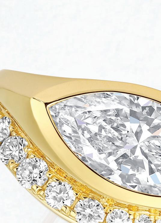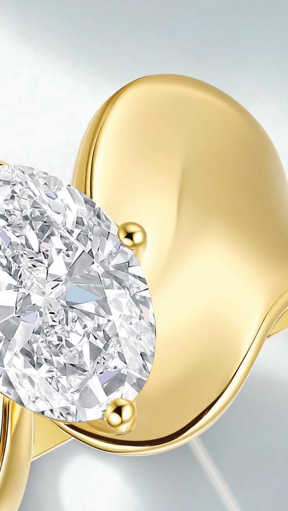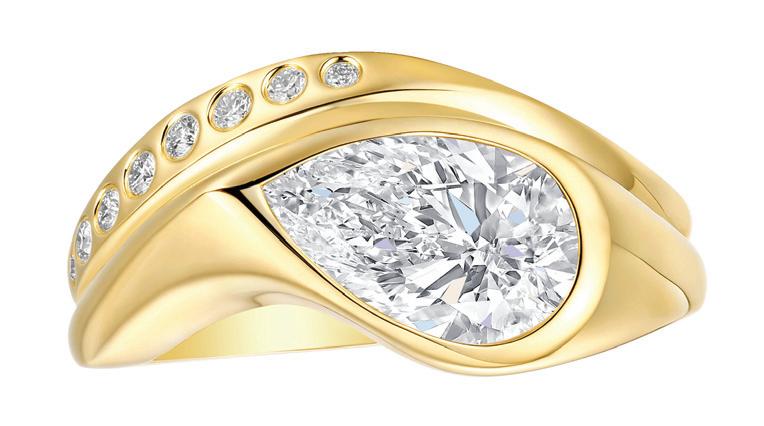 A stunning ring from the ‘Bold’ collection, ring features a pear cut labgrown diamond with side lab-grown diamonds weighing a total of 2.20 cwt., set in 14k yellow gold.