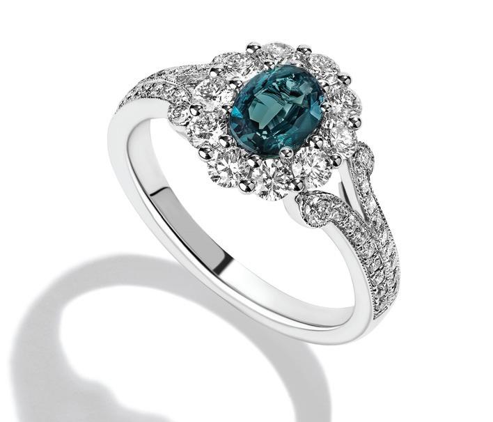 Crafted in 18K white gold, this elegant ring features a 0.57ct GIA-certified Brazilian Alexandrite, prized for its stunning color change. Surrounded by 0.83ctw of dazzling diamonds, it’s a timeless expression of sophistication and fine craftsmanship.