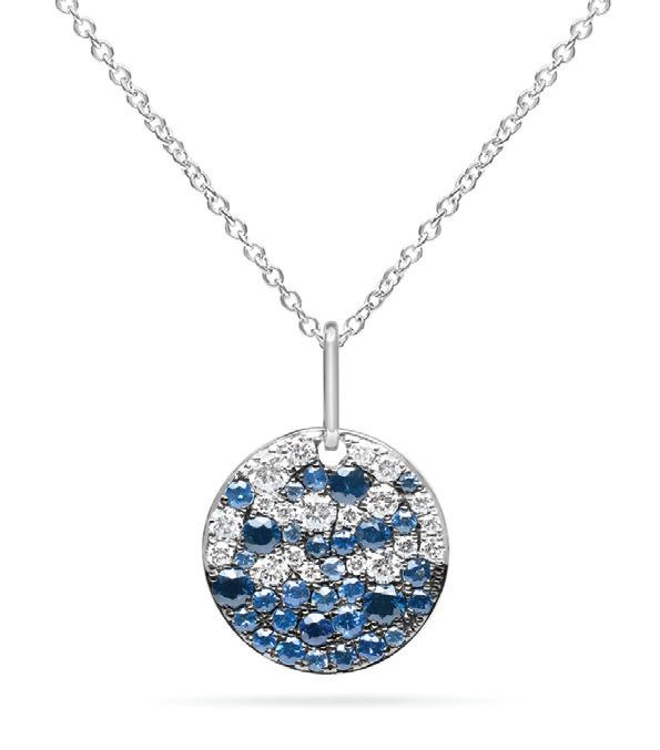 Make your showcase stand out with this Sapphire & Diamond Pavé Confetti Disc Necklace. Featuring a mix of diamonds and contrasting sapphires, this piece offers a bold yet elegant statement. www.dilamani.com