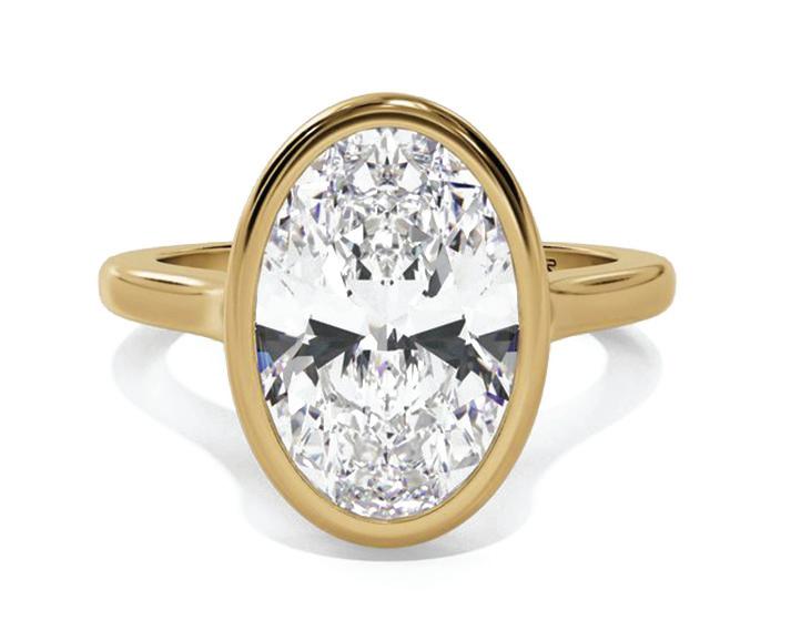 Crafted in 14K yellow gold with a bezelset oval diamond, this sleek ring is a best-seller for its contemporary look and timeless elegance.