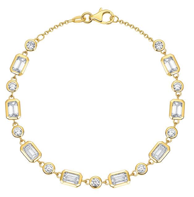Bracelet from the ‘Frame’ collection, bracelet features emerald and round cut lab-grown diamond weighing a total of 4.90 cwt., set in 14k yellow gold.