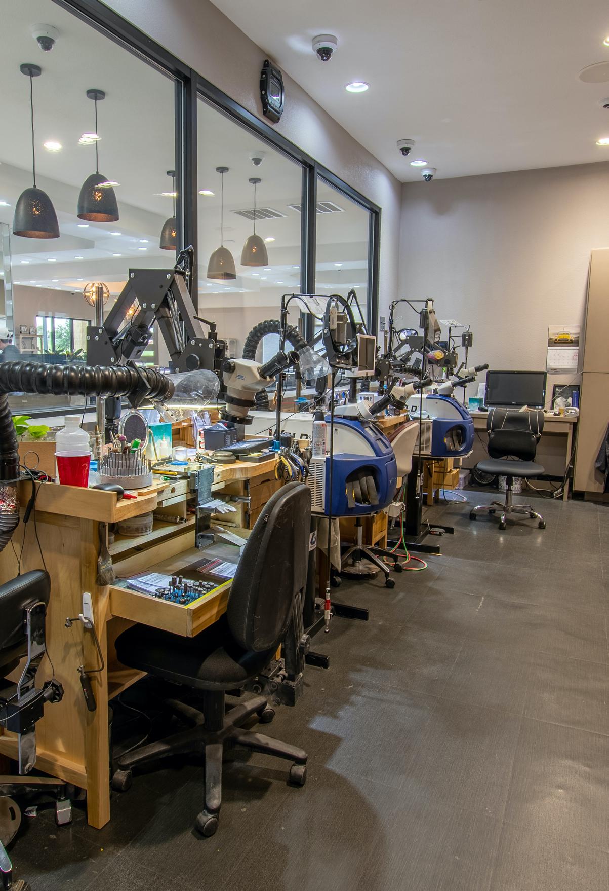 ADD OR REMOVE WALLS. Jewelry showrooms typically are an open floorplan. See picture of The Diamond Center with an open floor plan. Sometimes, I would recommend knocking down walls to reduce visual barriers. But before jewelry owners grab the sledgehammer; I would always recommend checking with a contractor to make sure it is not a load bearing wall. Partition walls promotes client’s interest in having a few niches in the space to feature special jewelry.