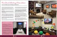 I also like to use area rugs in the waiting areas to convey a residential feel and a welcoming image. My favorite area rug that I designed for Crocker’s Fine Jewelry, Texarkana, TX, shown on Page 38, is a super thick and vey textural rug under the cocktail table. This gives the space a contemporary look like the store’s design.