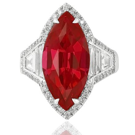 Set your eyes upon this breathtaking 7.04 Carat Burma Ruby with a surround of glistening diamonds. Handcrafted in Platinum to optimize absolute perfection. Style# R7551-R1
