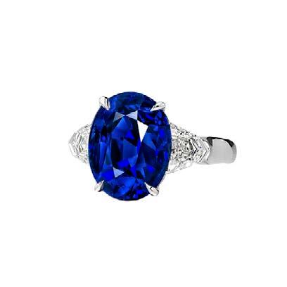 Superb 10.30ct Royal Blue Sapphire (H), mounted in a classic Platinum and Diamond Three stone ring, framed by two Diamond Shields 1.20cts