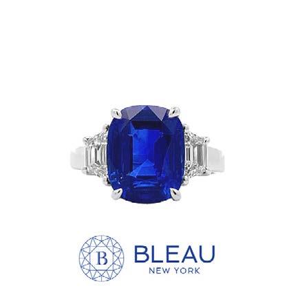 3 Stone Sapphire Ring with Trapezoid Diamonds. Sapphire is 5.55 carats, Trapezoid Diamonds is 0.87 carats, Ring Metal is Plati num, and the product is GRS certified. 17944