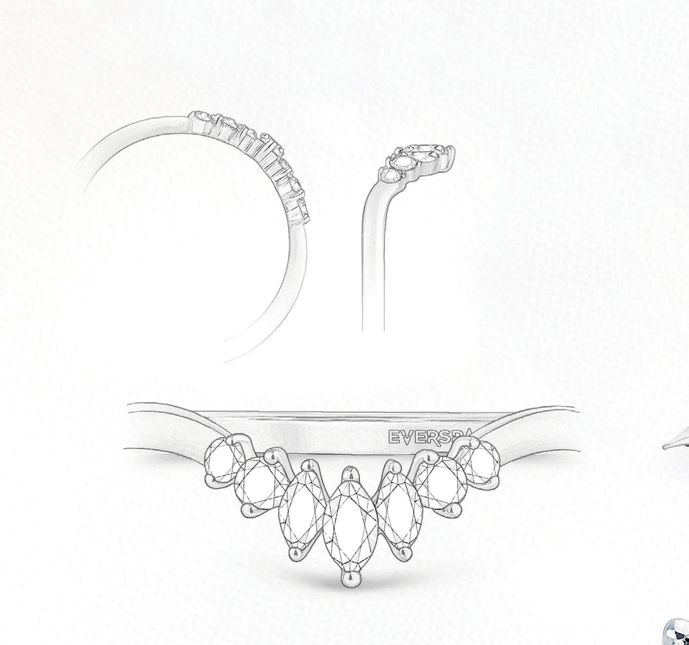 Classic 14K YG band featuring 7 pear shaped bezel set diamonds, perfect for everyday wear or special occasions, can be stacked with our bands with Marquise, Emeralds, Ovals.