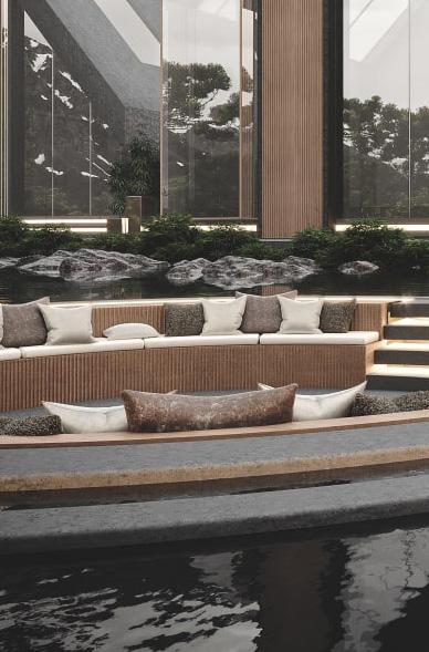 Modelagem do projeto de design de interior do lounge em yatch para o Yuma Studio 3D.