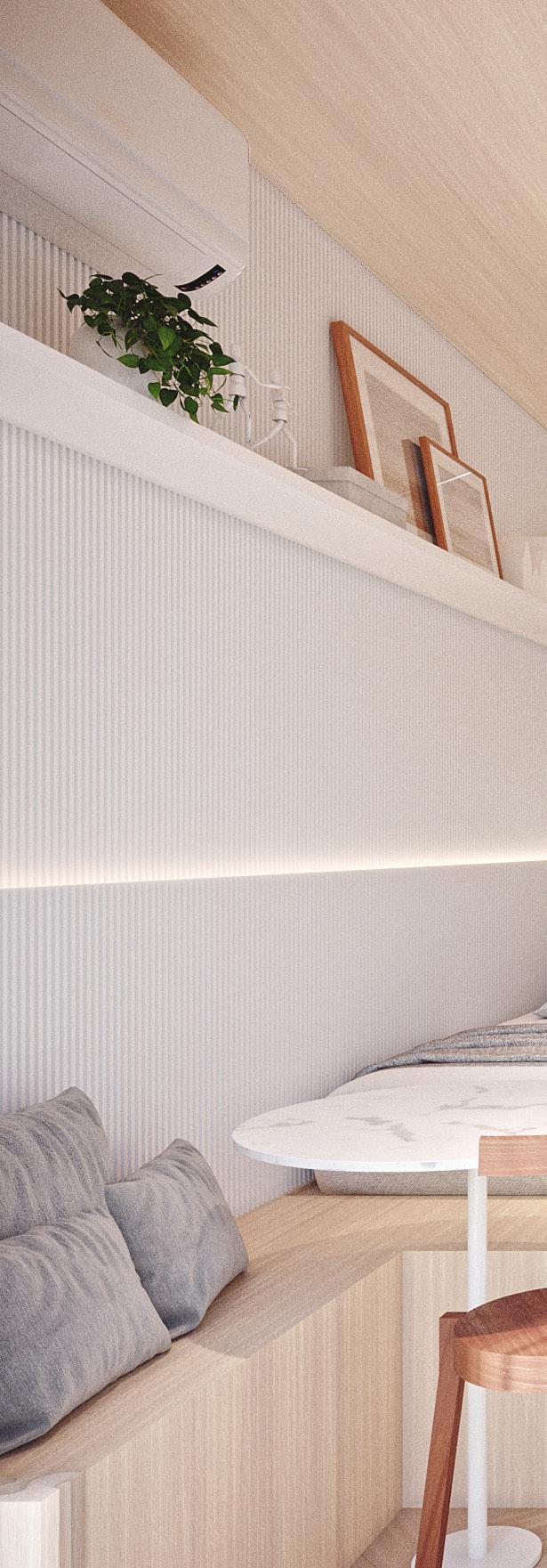 Modelagem do projeto de design de interiores de quarto em yatch para o Yuma Studio 3D.