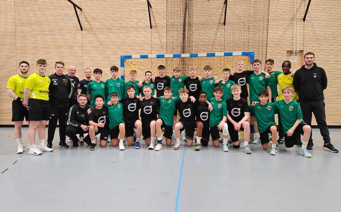 H71 D14 avmyndaðir saman við týsku hondbóltsdreingjunum.