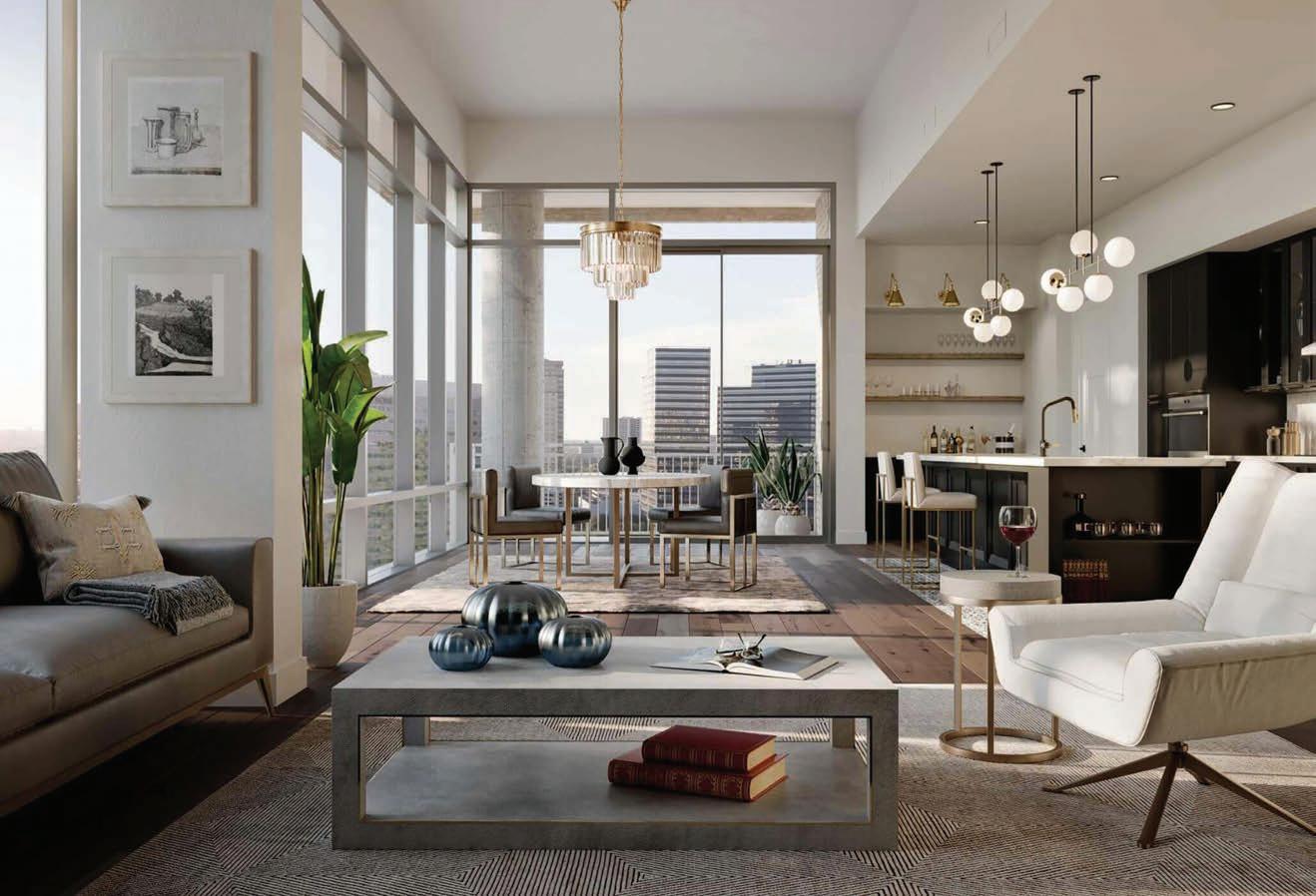 Crimson offers Houston’s premier residential experience with resort style living, a superior level of style and finishes and at an alluring River Oaks location. When you pull up to the high-rise you will be greeted by personable valet staff and walk into a luxury lobby with an ambiance of comfort and touches of marble accents, welcoming fireplace and the signature scent of bergamot and tobacco filtering through the vents. The concierge also offers a small menu of soft drinks, coffee, beer, wine and cocktails.