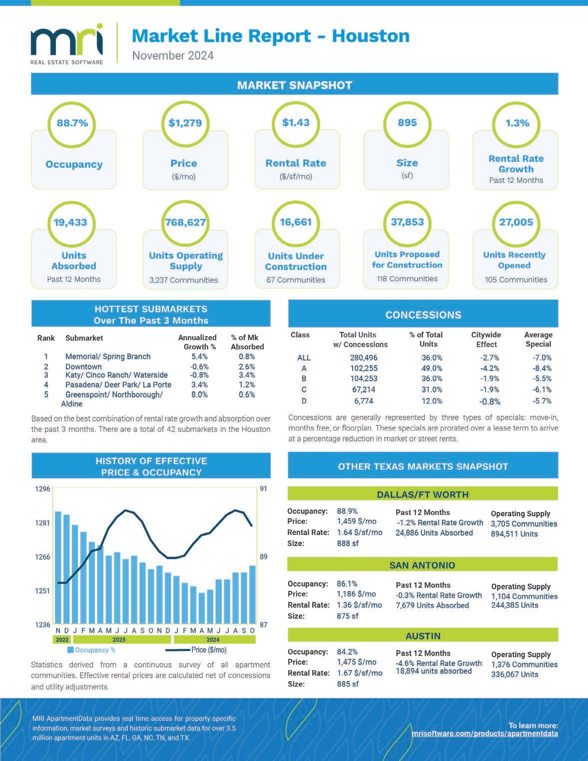 Asset Living: Connect Highstar, 77 units at 6440 Hillcroft Ave, Sydney's Park, 41 units at 1010 Tomball Pkwy in Tomball, Park at Humble, 216 units at 9390 FM 1960 Bypass Rd W in Humble, Cole Creek Estates, 108 units at 6855 Gessner Rd