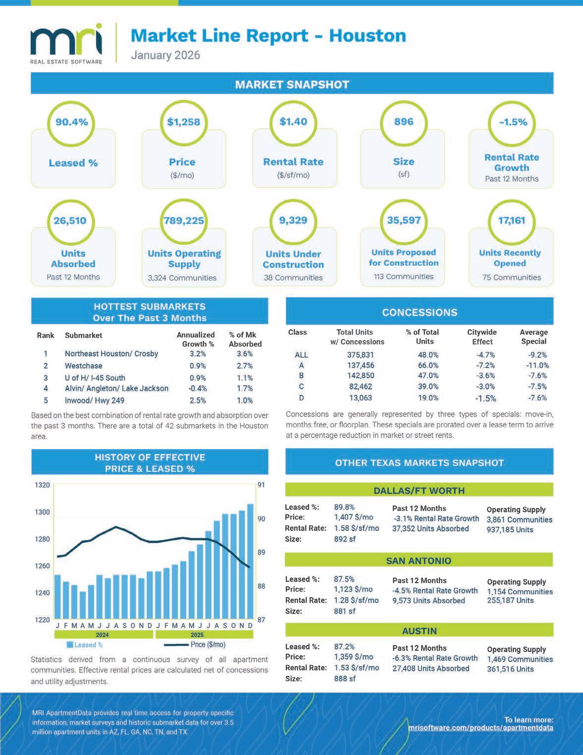 • LSCRE: Whispering Winds, 286 units at 2902 Whispering Winds Dr in Pearland, and Discovery at West Road, 280 units at 9404 West Rd.