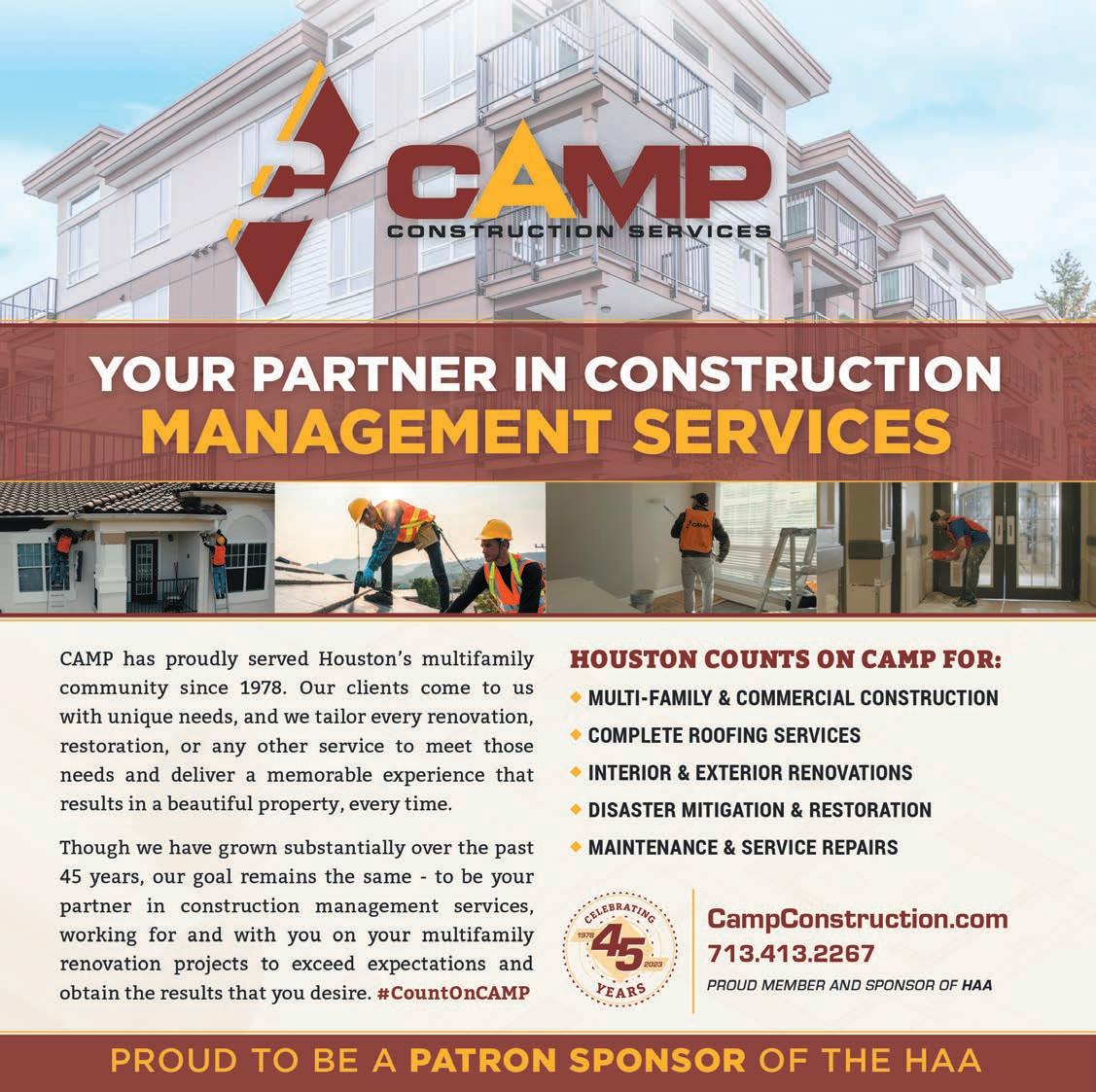 THE AMBASSADOR ONE SOCIETY is an organized network exchange that helps supplier partners build their business contacts within HAA. It’s the perfect way for new suppliers to get started with the association. Group members share leads, make introductions and support HAA and its members. For details on how to join and for meeting dates, visit www.haaonline.org/ambassadors or contact Amanda in the Membership Department at 713-595-0316, or email asherbondy@haaonline.org.