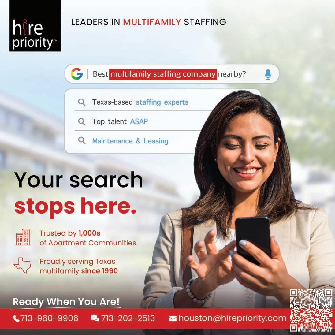 Hire Priority Staffing & Executive Search Inside Front Cover 713-960-9906 www.hirepriority.com