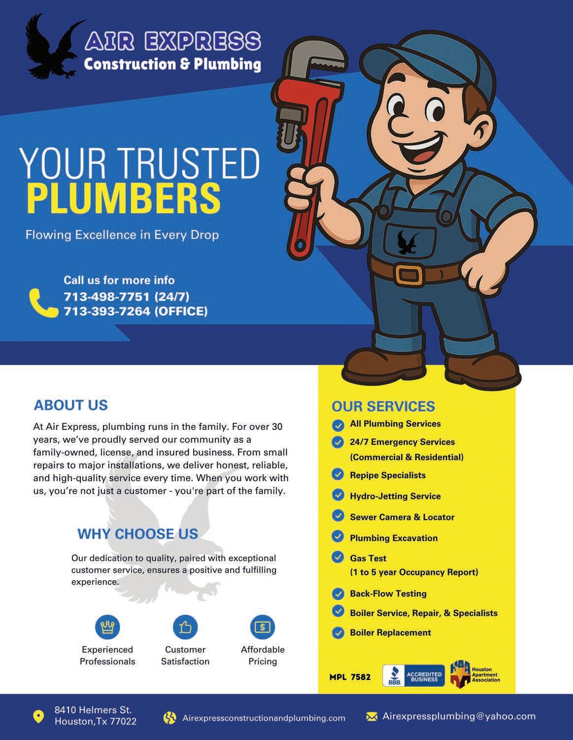 Air Express Construction & Plumbing 43 713-498-7751 www.airexpressconstructionandplumbing.com