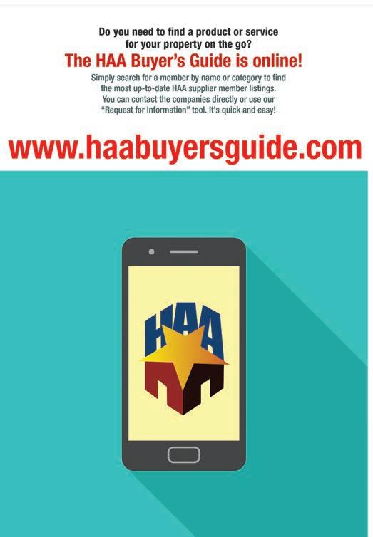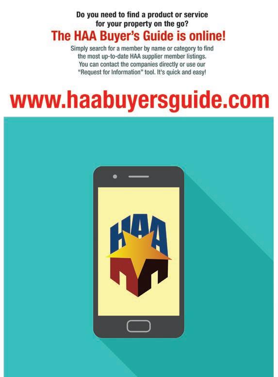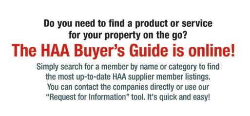 ALL SUPPLIER MEMBERS are listed online at www.haabuyersguide.com, searchable by product/service category or company name.