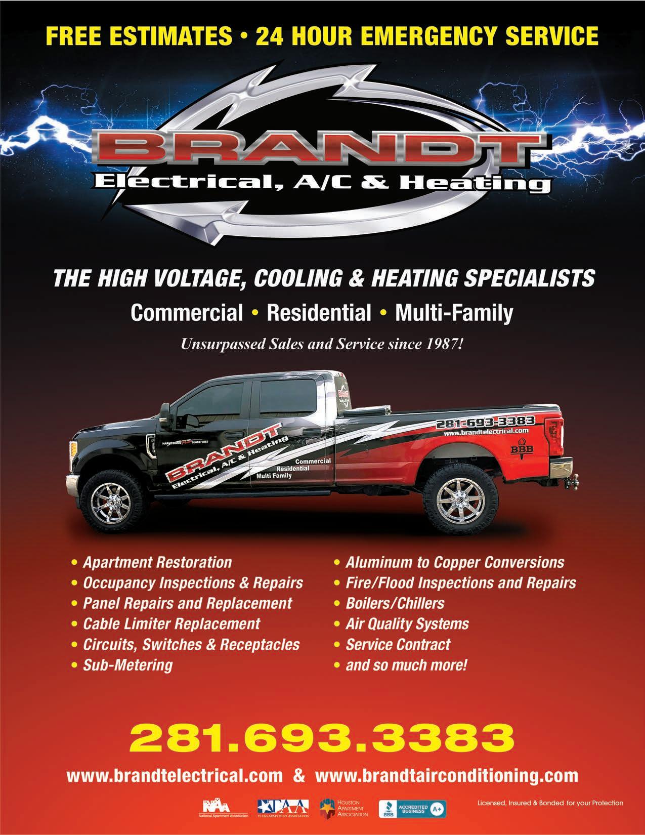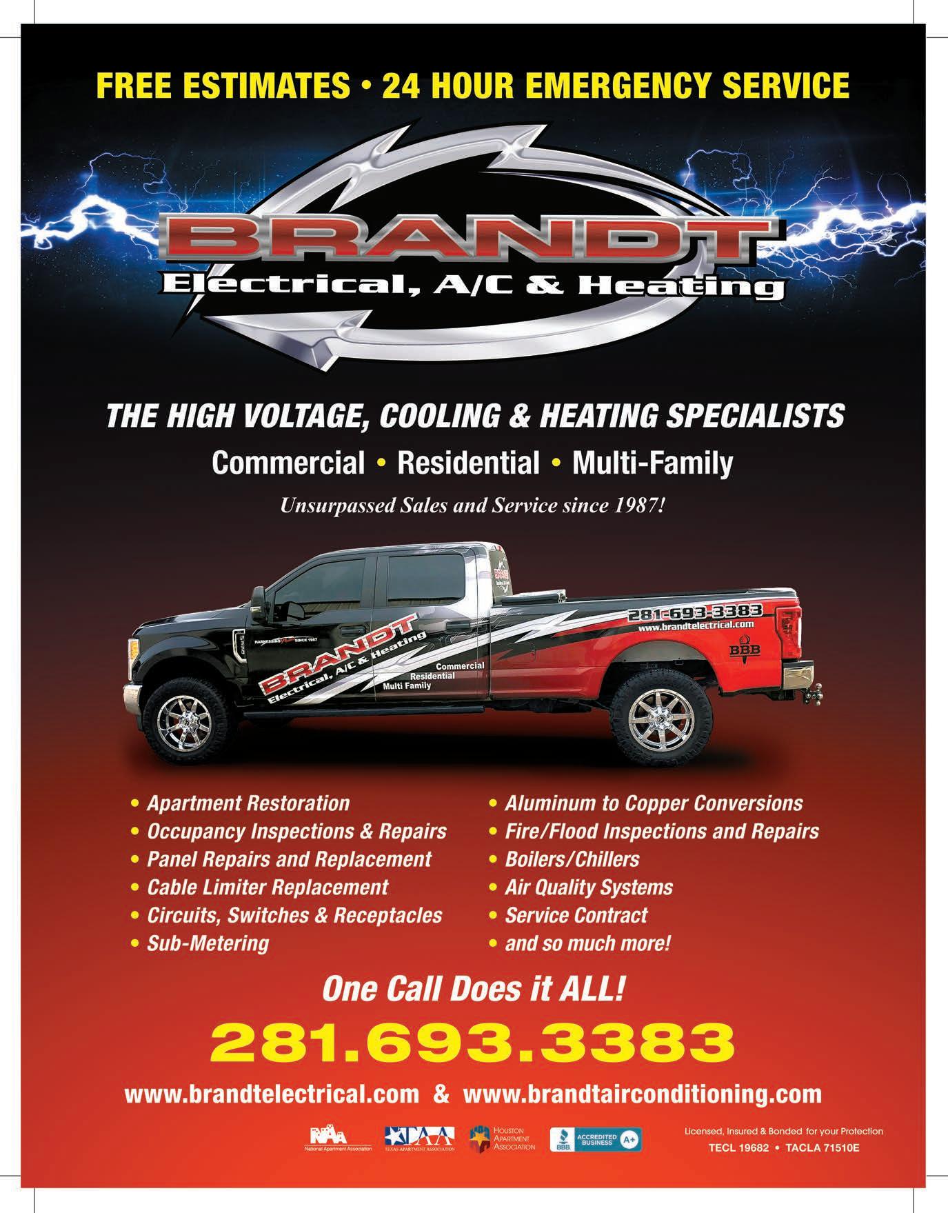 Brandt Electrical A/C & Heating Services 51 281-693-3383 www.brandtelectrical.com