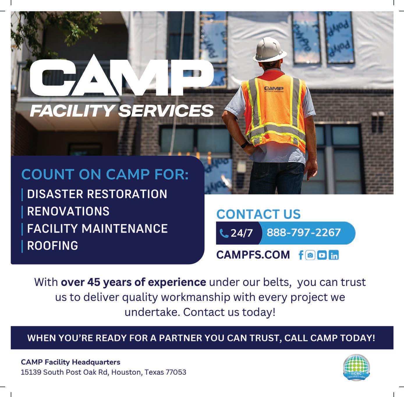 Camp Facility Services Back Cover 713-413-2267 www.campfs.com