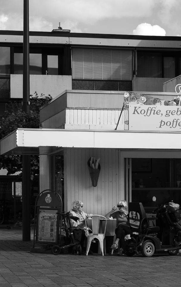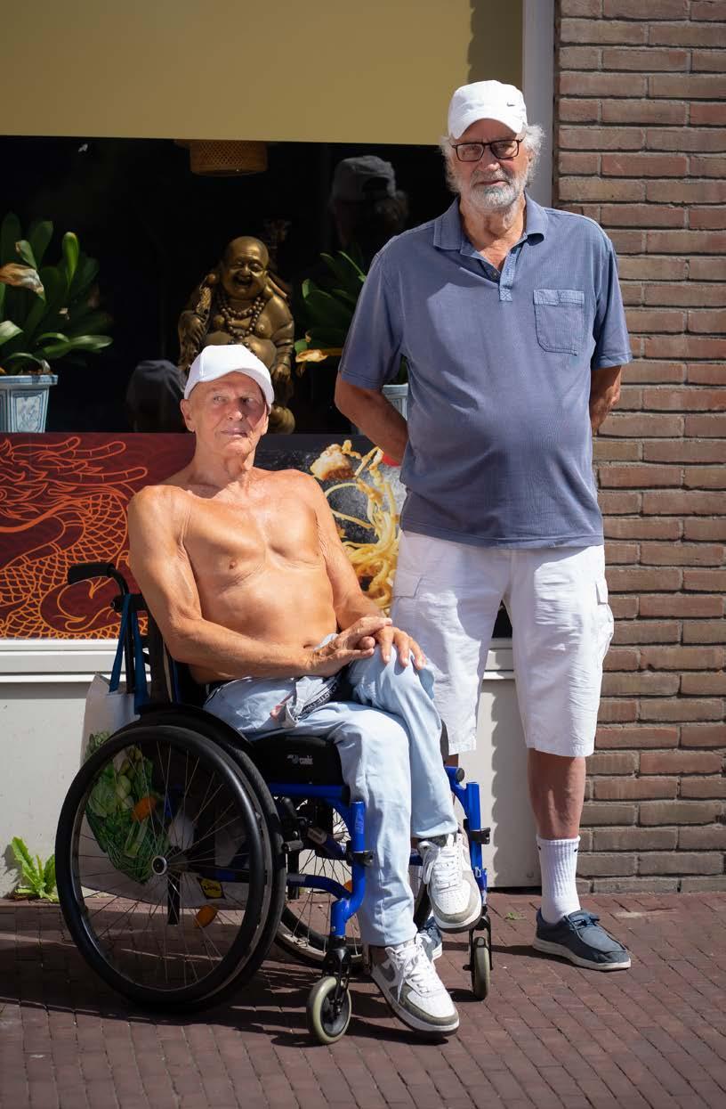 Ruud (76) zit op zijn vaste hangplek. Als de zon schijnt, parkeert Ruud zijn rolstoel steevast aan de gevel van het Chinees restaurant in het winkelcentrum. Hier zit hij het liefst in blote buik te zonnebaden, terwijl hij met passerende buurtbewoners verhalen uitwisselt. Vandaag is Leo (80) zijn sidekick. Volgens Leo baseren de ouderen hun mening op wat ze in de krant en op Facebook lezen en dat maakt hen bang. Ze zouden volgens hem vaker een praatje moeten maken met de jongeren, dan komt het wel goed. Ruud: “Het zou goed zijn als ouderen in zouden zien dat boos doen juist averechts werkt. Je kunt die jongeren beter af en toe een complimentje geven, dan luisteren ze ook als je ze een keer iets vraagt en laten ze zich van een hele andere kant zien. Ik heb er laatst nog een gecomplimenteerd, omdat hij rustig met zijn fatbike de stoep op reed. Hij moest lachen en was helemaal trots.”