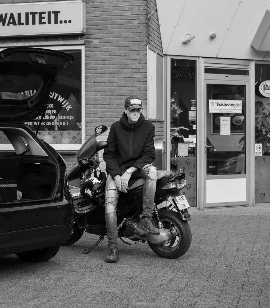 Mark opent trots de kofferbak. Hij kijkt triomfantelijk: “Moet je nou eens zien wat wij gewoon langs de weg hebben gevonden. Nu kunnen we nog harder knallen.” Uit de bak trekt hij een subwoofer, die hij boven zijn schouder houdt terwijl hij met zijn mond een dreunende beat nadoet en een paar seconden lang ritmisch begint te stampvoeten. Dit is wat zij nu verstaan onder ‘rondhangen’: ergens volgas heen rijden en keiharde muziek draaien. Dan stoppen ze vaak ook even ergens en chillen ze in de auto of bij de scooter. “Het geeft rust en je bent even de deur uit. Even met vrienden zijn en gezelligheid hebben maakt je hoofd leeg. Maar wel ergens op een parkeerplaats, niet midden in een woonwijk. Ik wil geen gedoe, want ik heb laatst mijn VOG weer teruggekregen.”