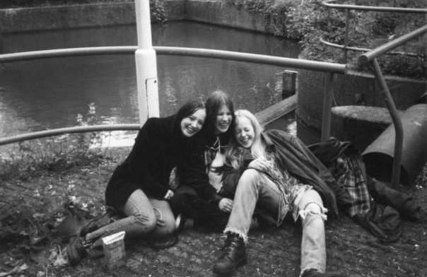 Als jongere heb ik veel rondgehangen in Den Haag. Op de foto zie je me samen met twee vriendinnen hangen op onze ‘geheime’ plek in de Vlaskamp (Bezuidenhout). Maar meestal waren we te vinden op de Hofplaats voor het Tweede Kamergebouw, bij de grondwetbank. Toen we daar niet meer welkom waren, verhuisden we (gedwongen!) naar de trap op het Spuiplein. Het was een plek waar altijd wel iemand was die je kende. Er werd geskatet, gelachen, rottigheid uitgehaald en er werden vooral veel nieuwe vrienden gemaakt. Sommigen voor levenslang, zoals de twee met wie ik op de foto sta. Anderen waren passanten, soms zonder dak boven hun hoofd of de taal niet machtig. In de avond gingen we ook uit, bandjes kijken zoals Doll House Drama en Atombox.
