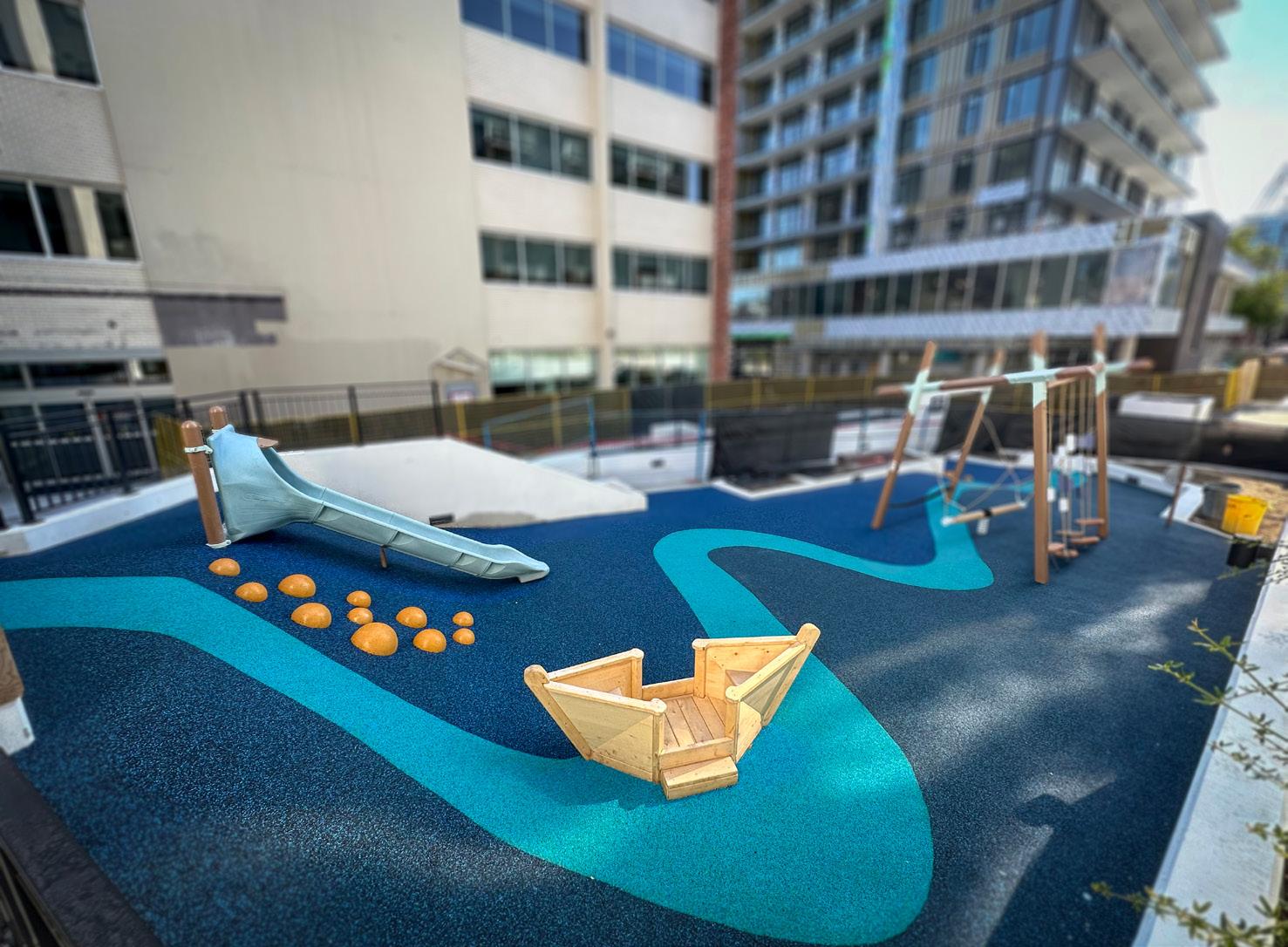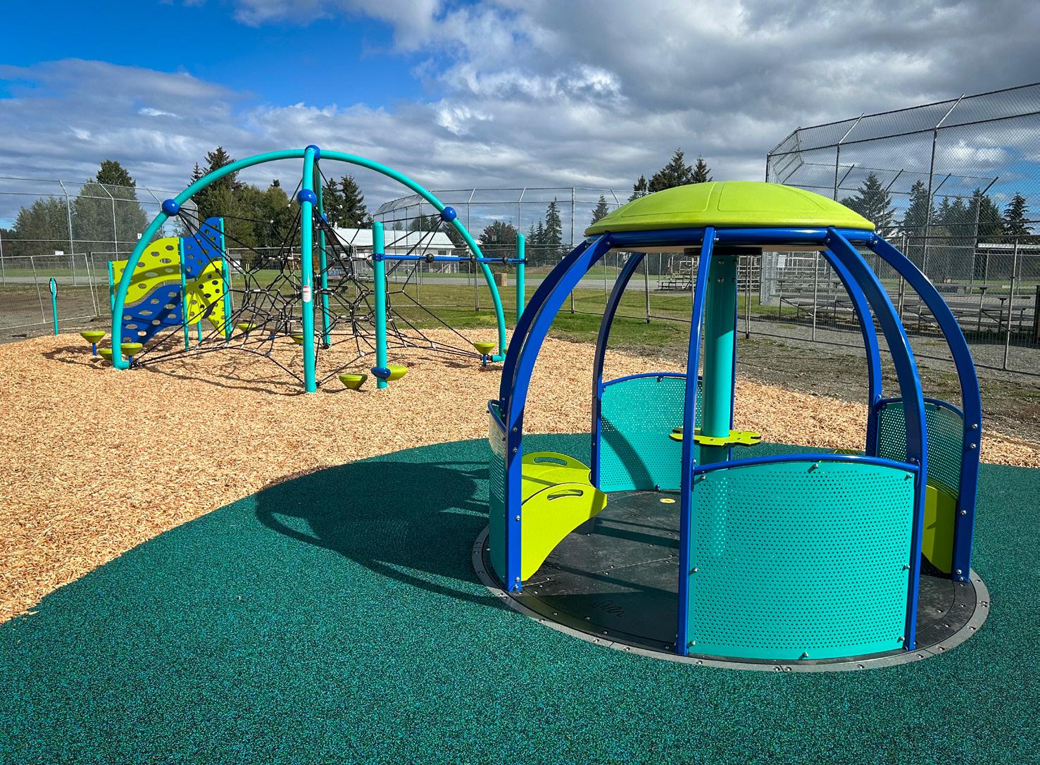 Integrated playground shade keeps surfaces cool and sun off skin, while keeping your play area footprint the same. Shade sails can be removed easily when it’s time for snow.