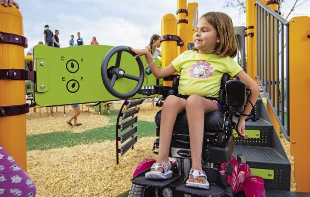 From the first multi-user, wheelchairaccessible glider that lets users control the motion, to accommodating sensory processing disabilities, to designing for those with low vision, to rethinking how accessible equipment is integrated within the playground site, we’re proud of what we’ve accomplished so far.