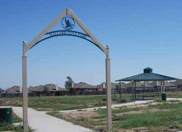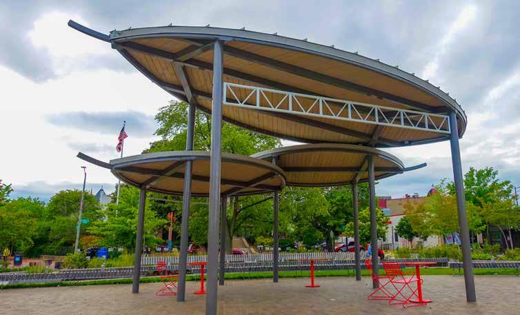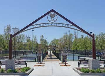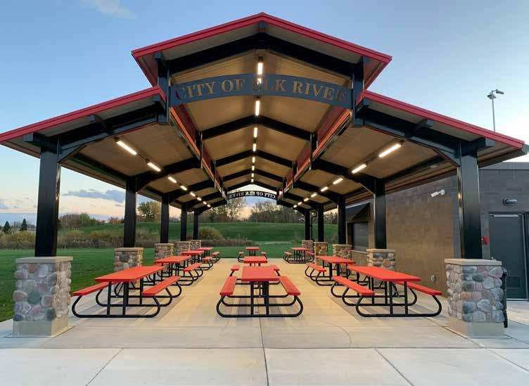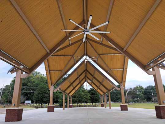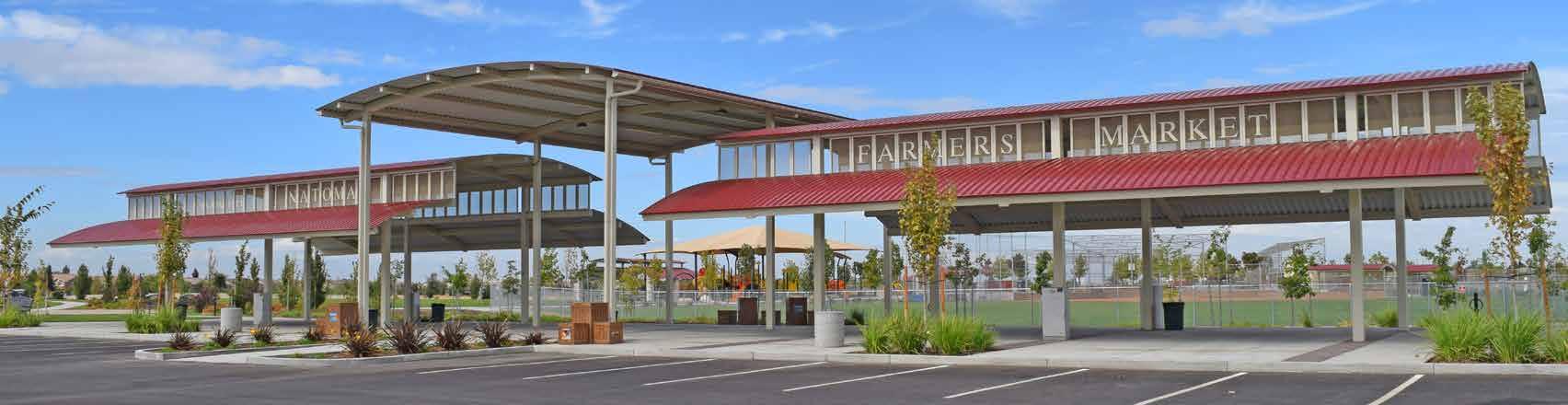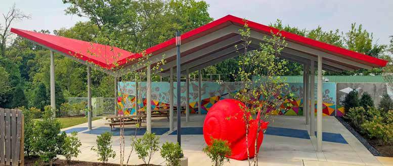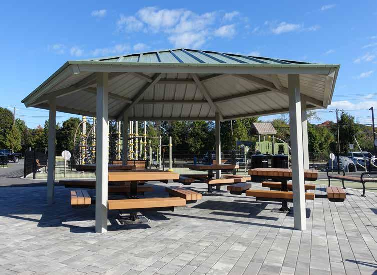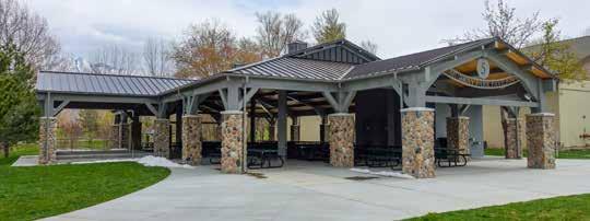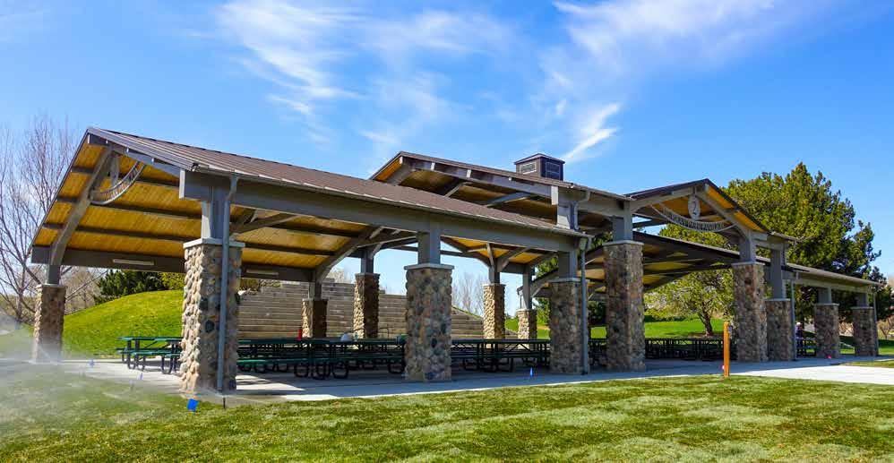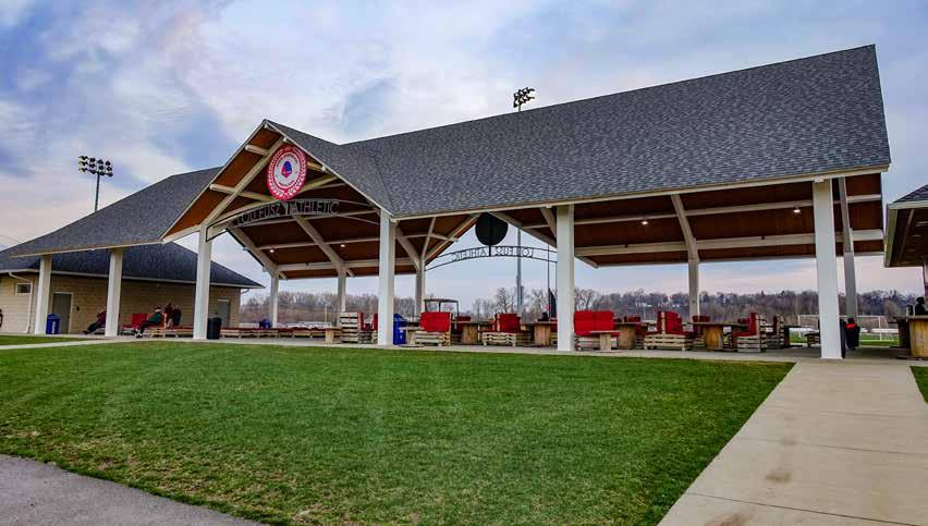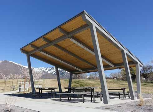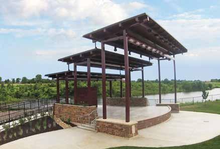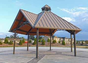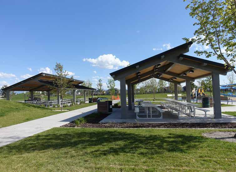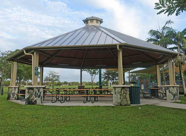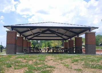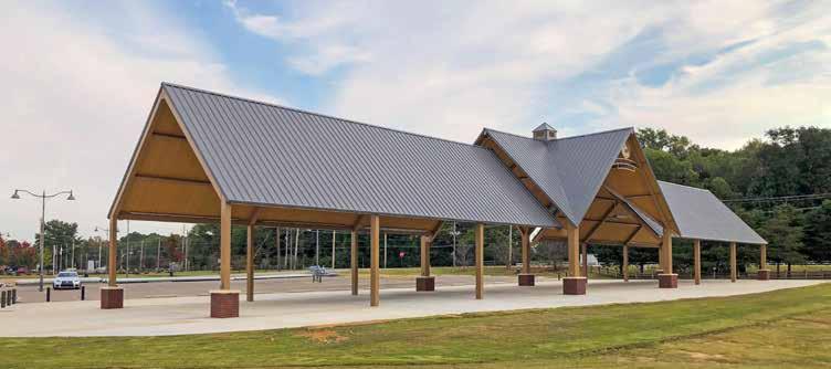 Several different structures were designed for Frisbie Park to provide appropriate shade and coverage for each area. The coordinating colors and styles make this facility both eye-catching and practical for many hours of entertainment both day and night.