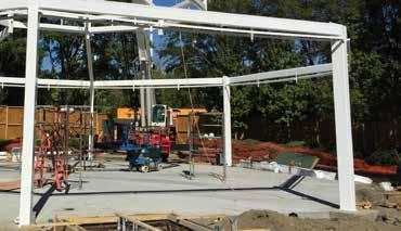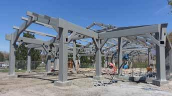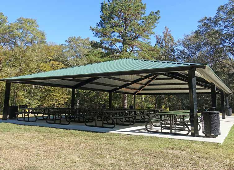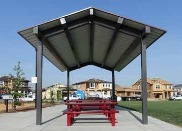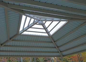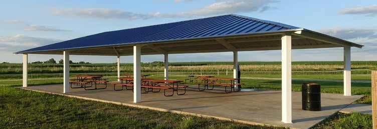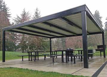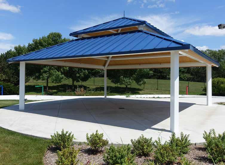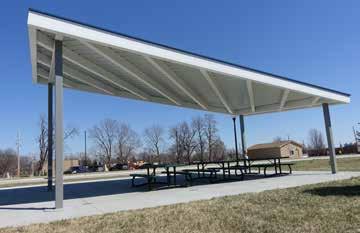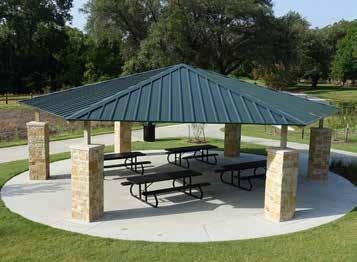 Poligon shelters are bolt-together steel frames, with a powder coat finish, that require no field welding. Roof decks are of either metal, tongue and groove, or structural insulated panels (with groove beaded ceiling). Secondary roofing is available in multi-rib, mega-rib, standing seam, or asphalt shingles. This predesigned package is shipped as a knocked-down pre-fabricated kit that includes the structural frame, roof deck, roofing, fasteners, trim, optional ornamentation and installation instructions. All shelters can be erected quickly when compared to typical construction. Certified Poligon Installers are recommended for the construction. Independent foundations can be designed by Poligon.