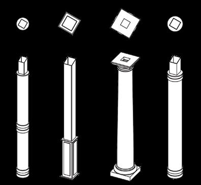 • Columns come in a variety of shapes and sizes. Oversized square, round and rectangular columns are available with or without accent bands