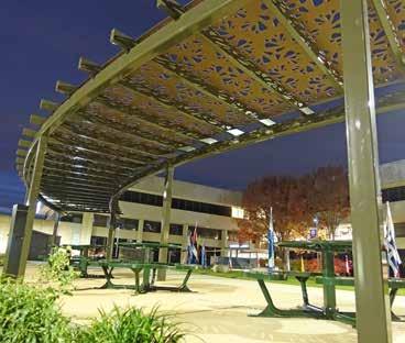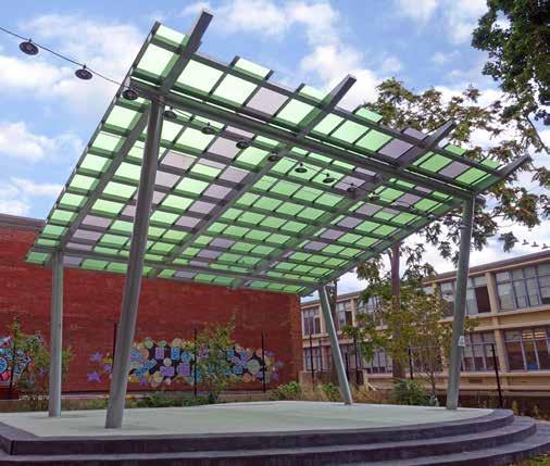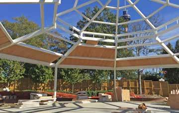 Poligon Fabric structures allow full shade in fun artistic ways.