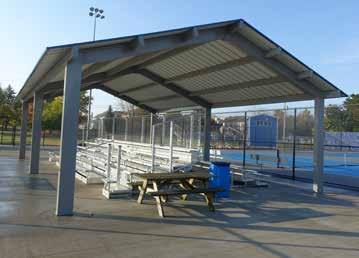 Coordinate your athletic complex with a variety of Poligon structures, including dugouts, bleacher covers, concession pavilions, restroom covers, lounge areas, kiosks, and more.