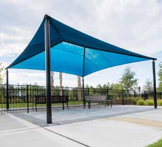 Each structure is designed with High Density Polyethylene (HDPE) Shade Fabric and offers professional grade architectural shade that blocks up to 98.8% of harmful UV sun rays. Fabric is also flame retardant and fade/tear resistant.