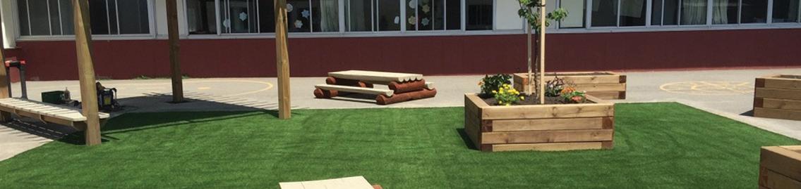 EXAMPLES USES: With Playground Tiles > < With Synthetic Grass