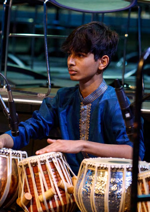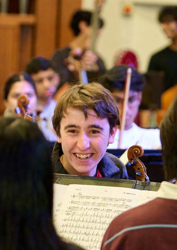 The Music School brings together students from both Habs Boys’ and the Girls’ School, drawing from a breathtaking pool of talent and creativity. We visit concert halls in London several times a year, curate projects through recording (Abbey Road and AIR Studios), collaborate with drama to produce original new work, run music partnership programmes in the community, host a range of dedicated courses through our Holiday Programme, and much more. Alongside our outstanding orchestral provision, the pinnacle being the Habs Elstree Symphony Orchestra, we have an exceptional jazz department, sending students every year to leading conservatoires in London and beyond. Since 2022 we are delighted to offer tuition in Indian Classical Music, on instruments such as Tabla, Dhol, and Harmonium. We have prodigious young songwriters, rock bands, composers, improvisers, one of the largest guitar orchestras in the country - all genres and styles of music are given equal platform. We want our leading musicians to guide our course of study, allowing them to impact the shape of what we offer with each generation that passes through the school.