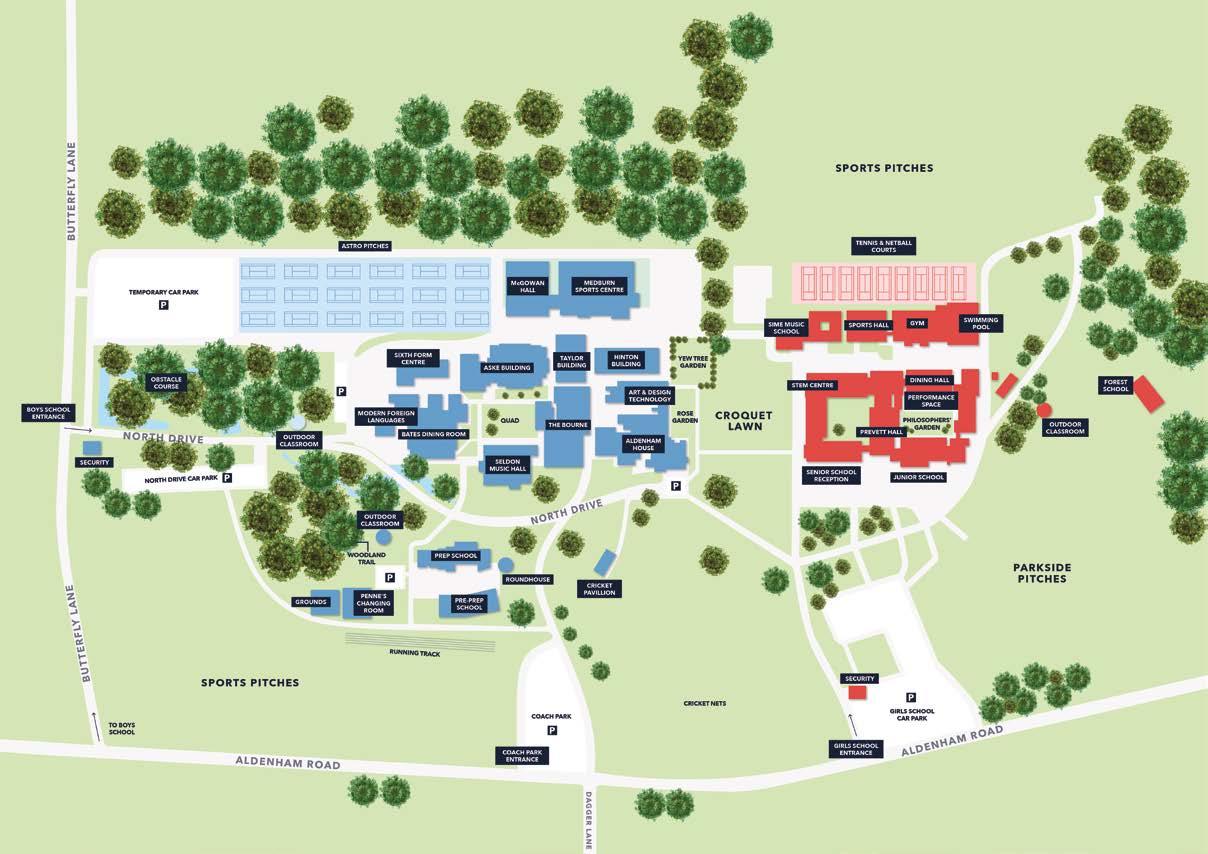 The security barrier on Butterfly Lane is lowered at 5.30pm Monday to Friday. If you need access after 5.30pm then you can still enter via Butterfly Lane and the security hut. The routine drop-off and pick up point for pupils is the Pitch 5 car park, next to the Astroturf pitches.