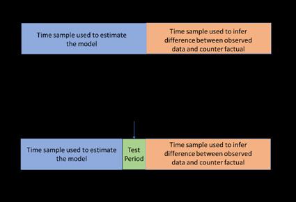2. It is evident from Fig 4 that the historical fit of model is accurate. When looking at the observations used to estimate the model – years minus 15 to zero – the synthetic control variable accurately tracks the observed data. However, this is only fitting the data and not forecasting it. A true out-of-sample forecast test has not been conducted. Therefore, we cannot be sure if the synthetic control will remain accurate when making forecasts across time. Essentially, the stability and accuracy of the model across time has not been tested. A possible solution would have been to have a hold out period (say 3 years) prior to the start of the populist regime to test the forecast accuracy of the model. This is illustrated in Fig 5.