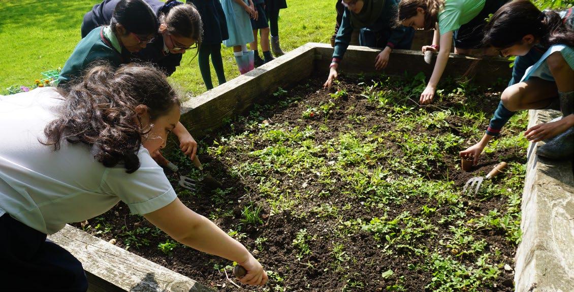 Mrs Claire Brown Head of Junior SchoolYear 6 having a great time in their outdoor learning and planting flowers.