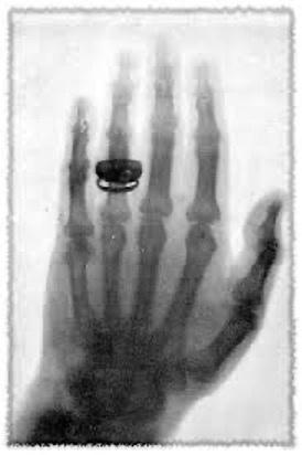 Radiology’s origins date back to the year 1895, when German engineer and physicist Wilhelm Conrad Röntgen discovered X-rays. He had experimented in his laboratory for a few weeks to produce these "strange rays" which he termed as " x " , when he later figured out that when objects of varied thicknesses were placed in the path of the rays there was a visible, variable transparency on a photographic plate. He asked his wife, Anna Bertha, to lend him her left hand which he lay in the path of the rays, indicating that the bones of her left hand were more permeable to the rays, as they scattered a less dense shadow. It was this discovery that he wrote about in his paper "on a new kind of rays" that won him his first Noble Prize in Physics in 1901. This "phenomenon" sparked worldwide interest and, within weeks of Röntgen's announcement, many hospitals around the world established X-ray rooms This gave way to the first radiology departments. The British Röntgen society was opened two years later after Röntgens discovery in 1895 after an increase in global interest, and over the next few years, the society carried out further studies into the use of X-rays and the results of radiation on the human body. While further studies were still being carried out, the first clinical use of radiology took place two weeks after Röntgens discovery, by John HallEdwards on the 11th of January 1896 in Birmingham, where he radiographed a needle that was embedded in his associate's hand.