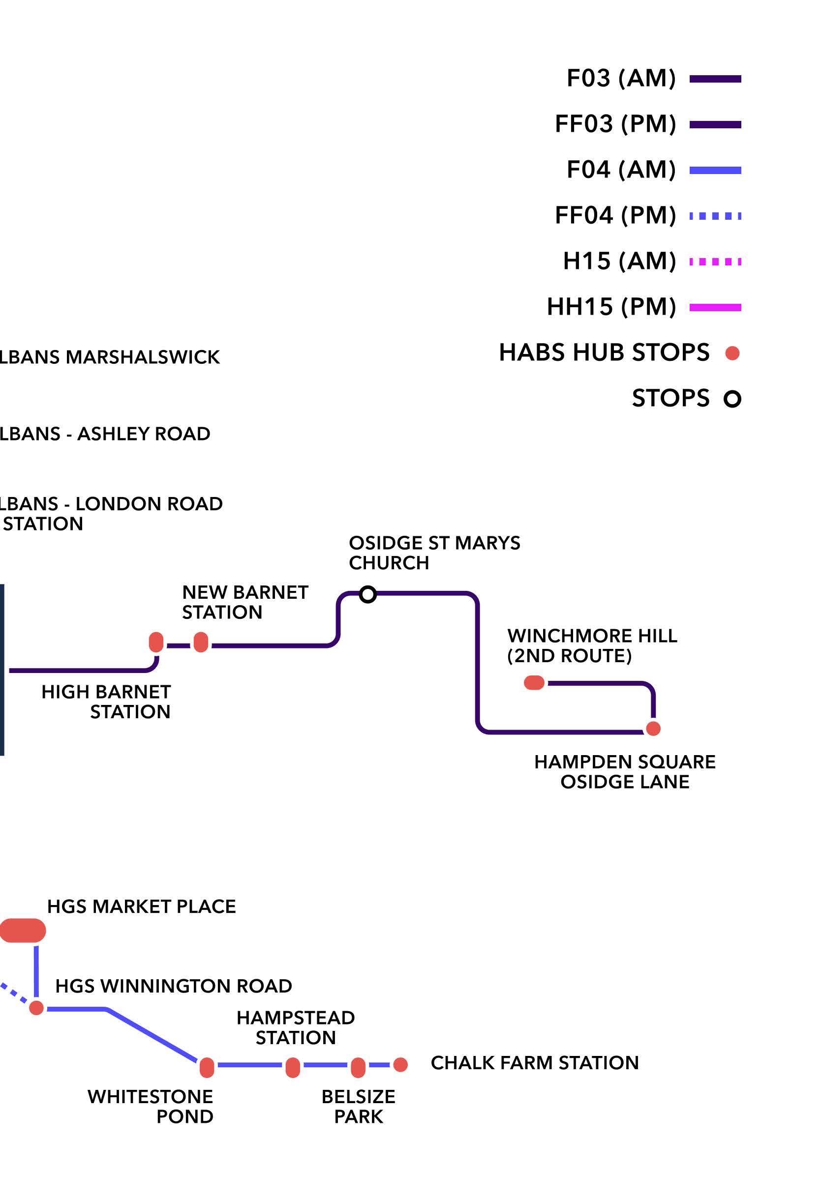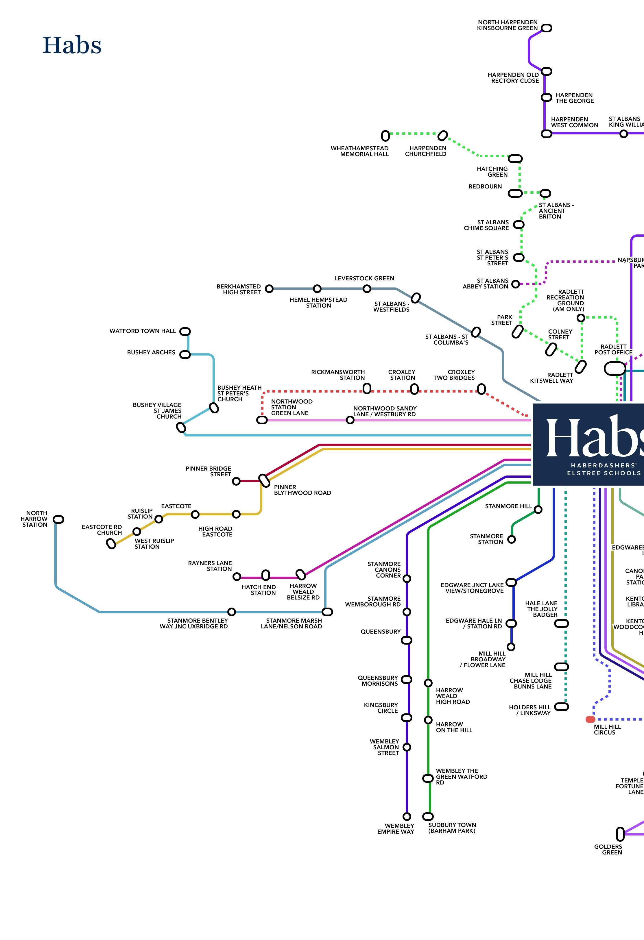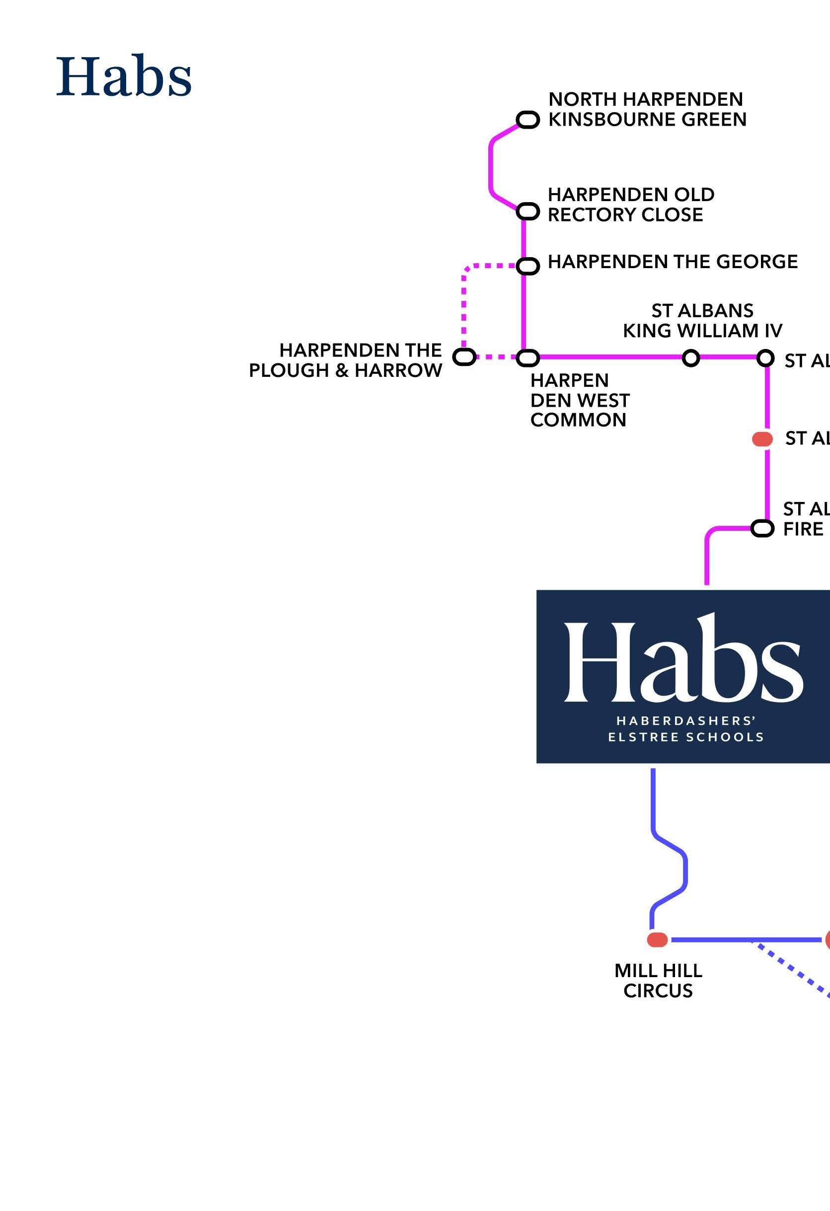 Students can also travel to multiple tube and train stations including Radlett, Elstree and Borehamwood, Stanmore, Edgware and then travel on our school coaches to Habs.