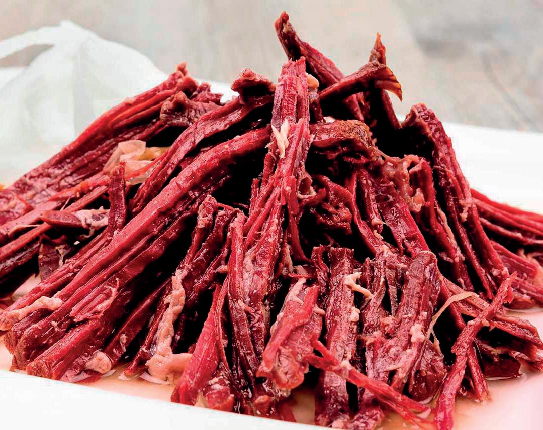 La clave es la pieza de carne a utilizar, de ella dependerá y mucho el resultado final. La más demandada es la pieza denominada de ‘perdiz’, por su jugosidad. A ser posible de vaca, mejor que de ternera, ya que el sabor de la carne será más contundente. También se realiza con otras piezas como la contra o el redondo, obteniendo unos buenos resultados.