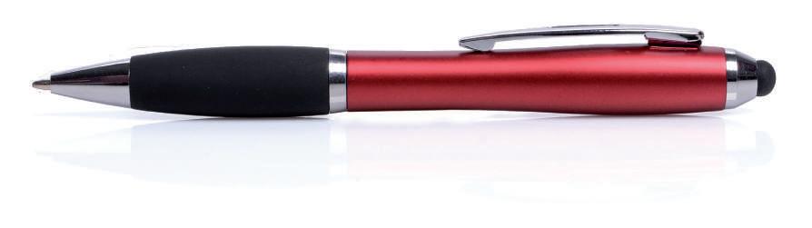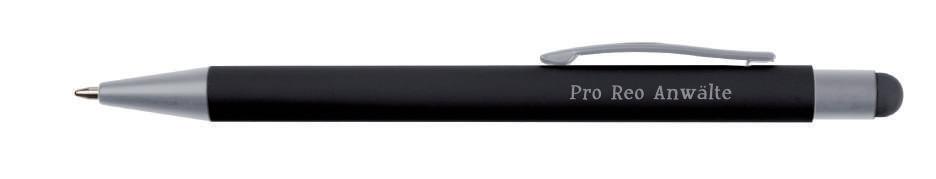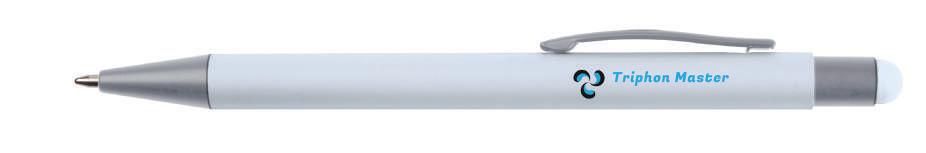 Grifffläche, Touch-Stift und Metallapplikationen. Blauschreibende Mine.