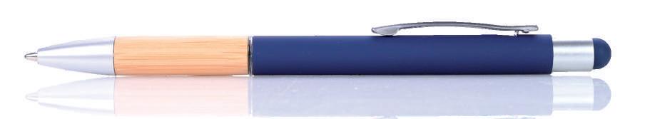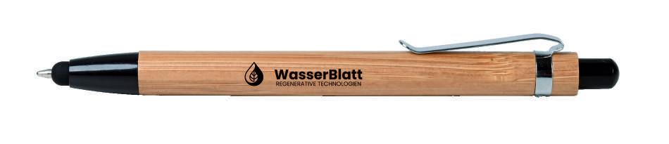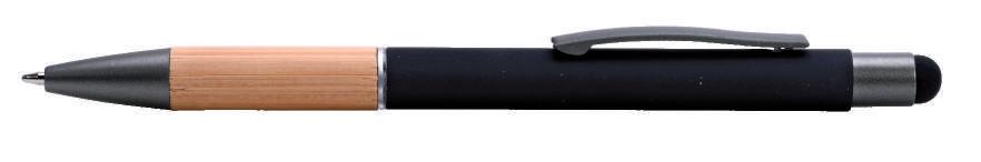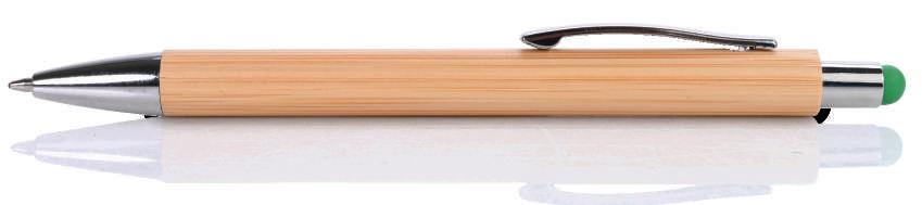 Bambus-Kugelschreiber mit Metallclip, verchromter Spitze und farbigem Touch-Stift auf dem Drücker. W Werbedruck. Fläche: