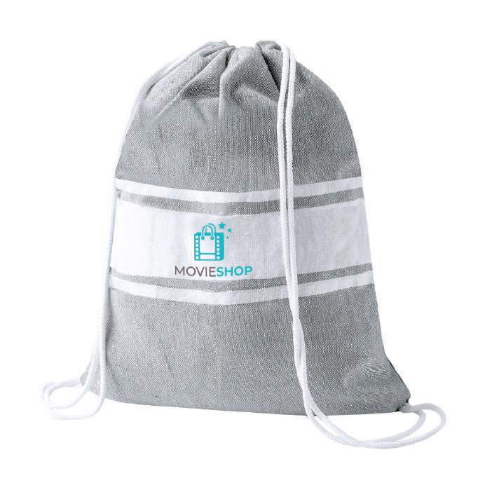 RUCKSACK AUS RECYCELTER BAUMWOLLE mit integrierter Decke Rucksack mit Kordelzug, hergestellt aus widerstandsfähiger recycelter Baumwolle 170g/m2. Mit einem speziellen aber einfachen Faltsystem verwandelt sich der Rucksack in eine einladende Pareo Decke. Maße: Decke 180 x 90 cm