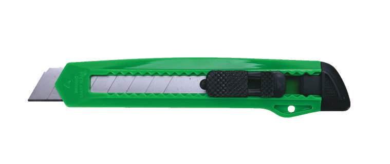 Cuttermesser mit schwarzer Klinge (10 Klingenabschnitte und Ersatzklinge), Klingenvorschub mit Gleiter und Auto-Stopp sowie Abbrechhilfe. Edles, mattes Gehäuse aus stablilem ABS.