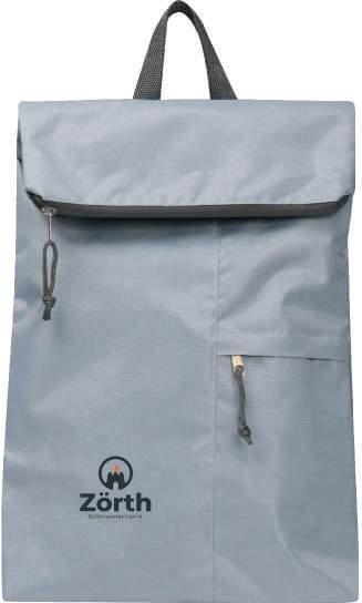 Rucksack aus recycelter, strapazierfähiger Baumwolle (370 g/m²). Großes Hauptfach mit erweiterbarer Öffnung durch Ausfalten und Clipverschluss. Zusätzliche Vordertasche mit Reißverschluss sowie eine kleine Seitentasche. Verstellbare Rückenträger. Kapazität : 25 l