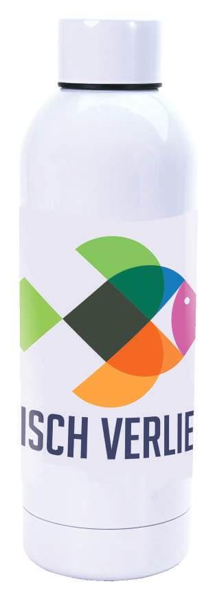 Schlichte und elegante doppelwandige Thermosflasche mit einem Körper aus recyceltem Edelstahl.