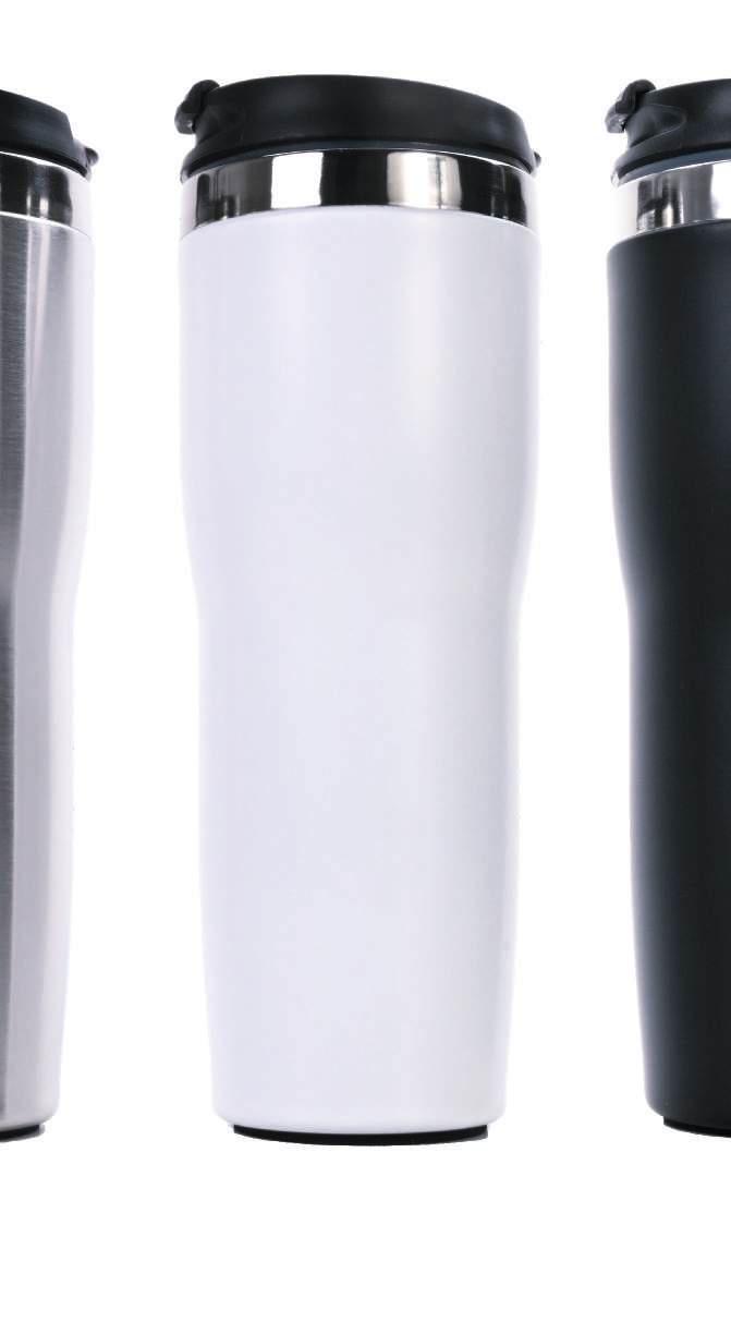 Doppelwandiger matt lackierter Trinkbecher aus Edelstahl mit Vakuumisolierung (350 ml). Auslaufsichere Trinköffnung, perfekt für‘s Auto oder beim Sport. Hält den Inhalt 12 Stunden lang heiß und 18 Stunden lang kalt.